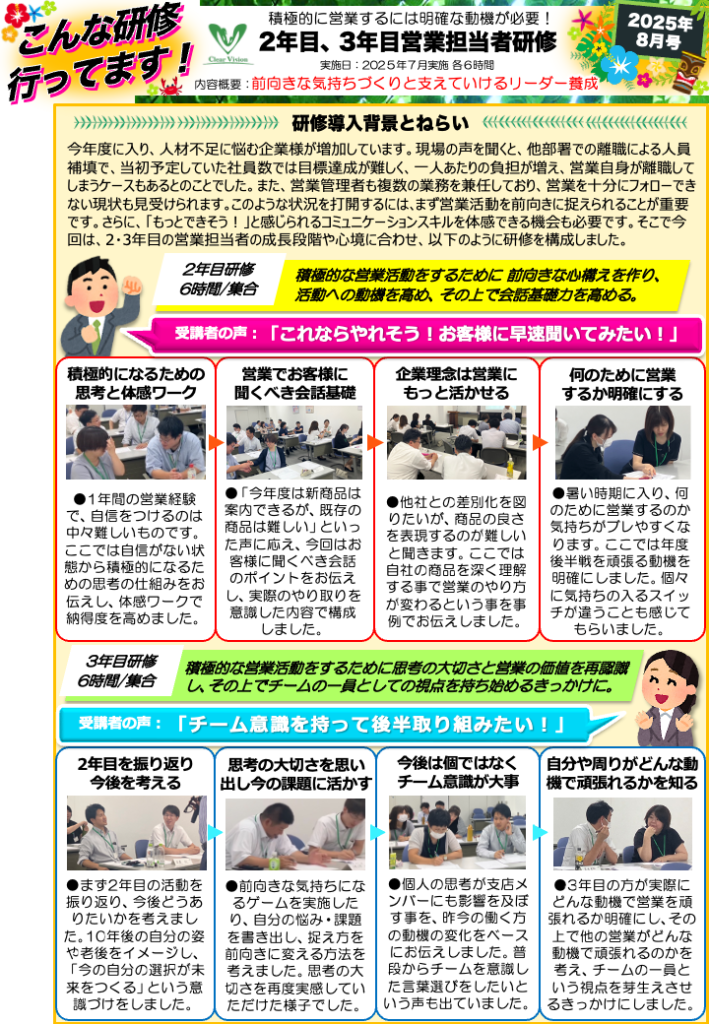 2025年8月こんな研修行いました。『2年目、3年目営業担当者研修:前向きな気持ちづくりと支えるリーダー養成』